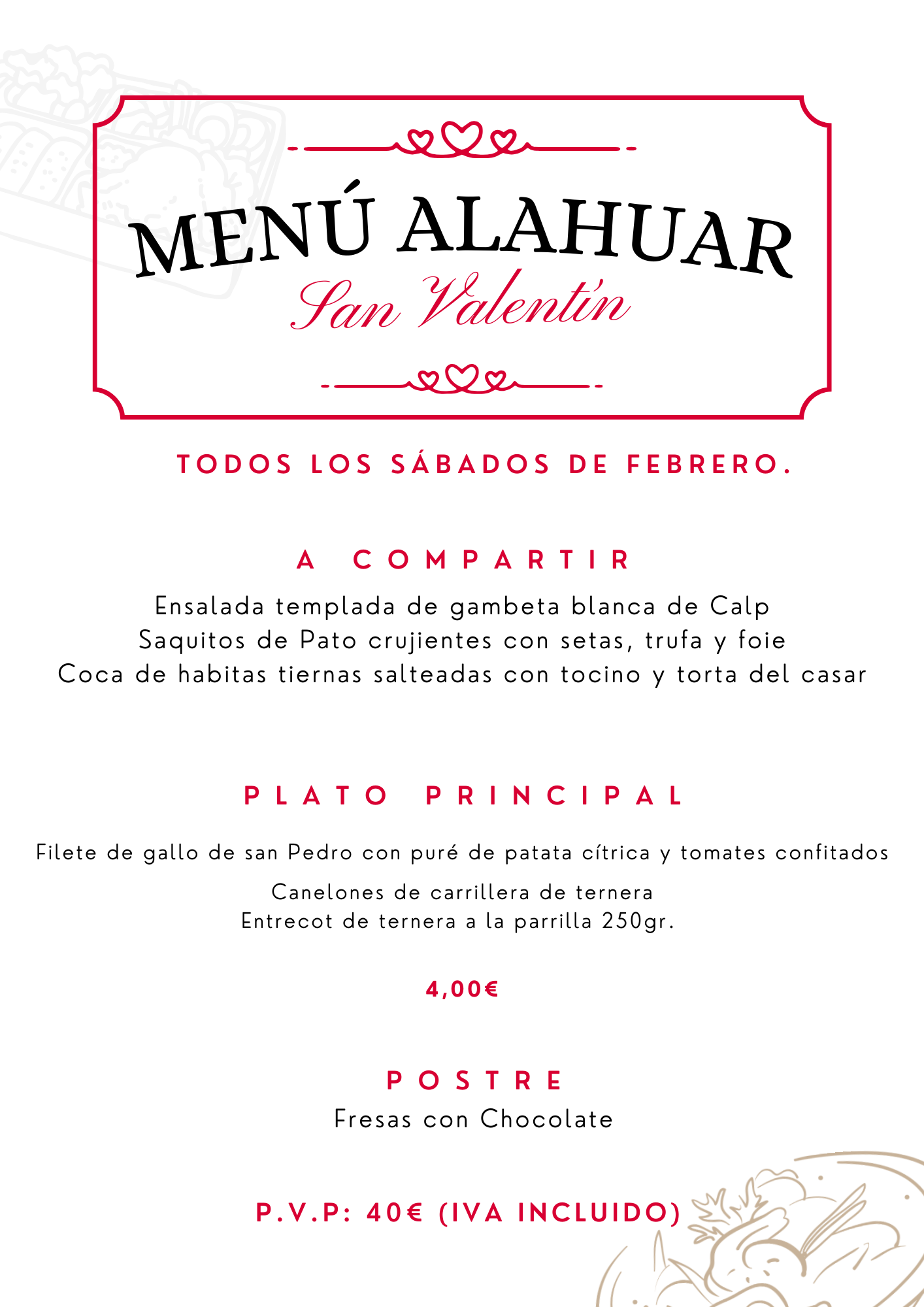 At the Alahuar Hotel Restaurant we are excited for the arrival of the month of February, the month of love and friendship. As is tradition in our establishment, we have prepared something very special for all lovers and those who want to celebrate this day in a unique way.